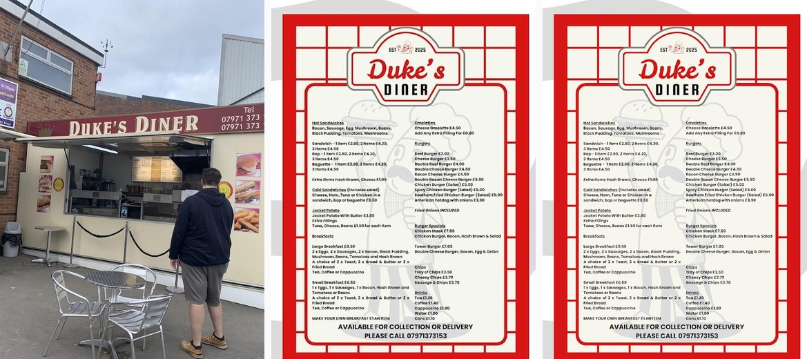 Discover Duke's Diner in Great Malvern, where we serve fresh, delicious breakfast and lunch daily. Enjoy great coffee, casual dining, and a welcoming atmosphere perfect for solo diners and groups alike. With outdoor seating, kerbside pickup, and delivery options, we cater to all your dining needs. Join us for amazing meals made with care at unbeatable prices!